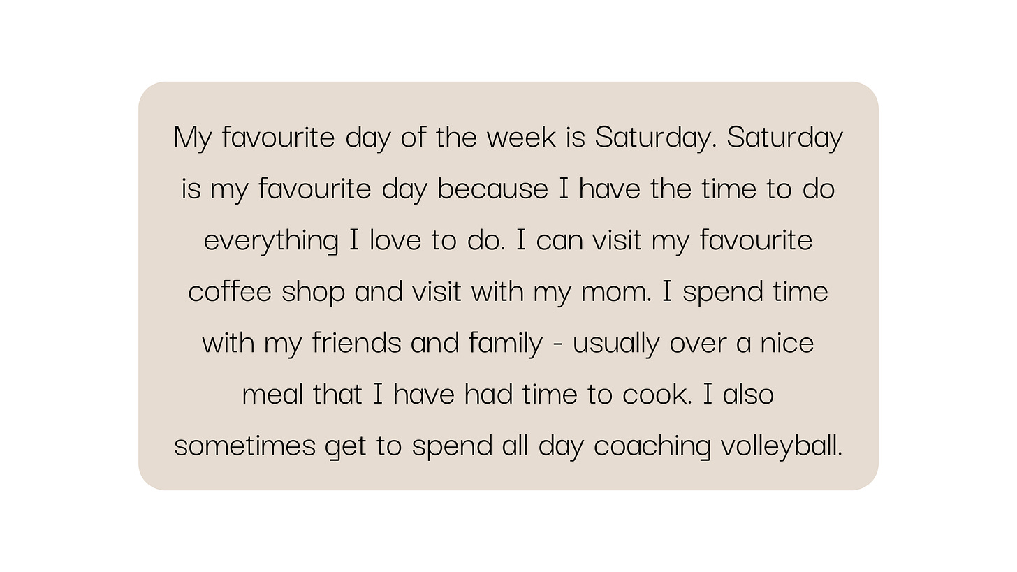 Prompt: Name your favourite day of the week and explain why it’s your favourite day.